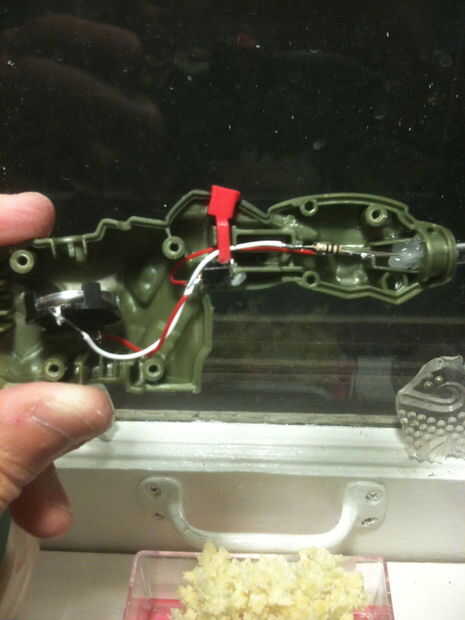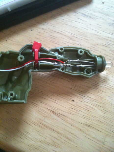 Lo sentimos no hay ningún diagrama de cableado. Este es bastante básico. Conecte el extremo positivo de la pila (o batería de vivienda si tiene suerte en su barrido) al interruptor, continuar con otro cable en el poste vecino de interruptor al LED. Conecté la resistencia directamente al cátodo. Desde el otro extremo de la resistencia nos llevó la corriente hacia el extremo negativo de la batería. Circuito completo. Después de que el émbolo de una prueba o dos hemos decidido fue lo suficientemente robustos para comprometerse a cerrar para arriba!