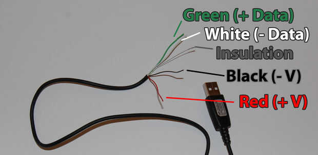 Cables USB suelen utilizan estos colores, pero ustedes pueden variar. Google si son diferentes o simplemente conseguir un cable nuevo!
