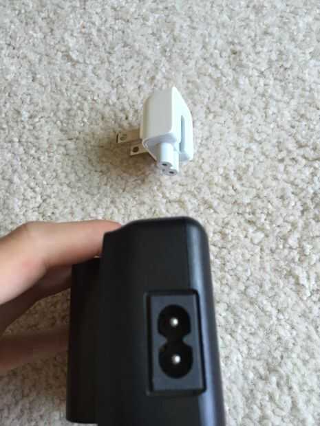 Todos aquellos que tienen un macbook y un cargador de mac para tu iPhone conocen el problema: la pieza de conexión para el enchufe * debe * ser intercambiables, pero realmente es sólo el pedazo de enchufe corto y directo. La pieza con el cable carece