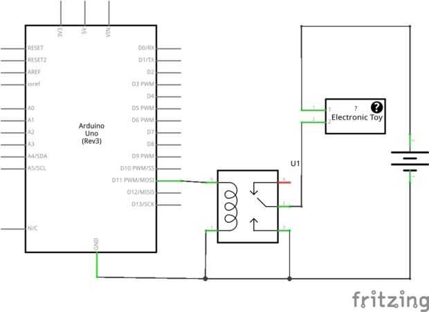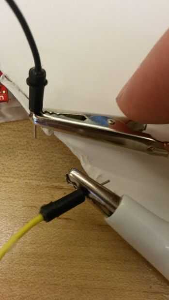 Conecte su mini protosnap sobre una tabla de pan. Conectar un relé en el tablero de pan y cuatro alambres de puente así como clips de aligator. En el componente eléctrico de la tarjeta necesita conectar las pinzas del aligator que están conectados a la tierra, así como la palanca (la tierra se ubicará por debajo del cierre). Conecte los cables de puente a los clips de aligator y ponerlos en los puntos exteriores del relé.