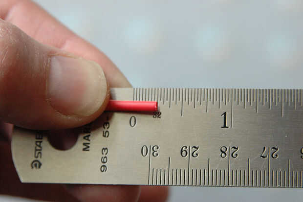 Para los bits de seis (o cinco) cerca del jefe del pin de ángulo recto, se puede utilizar 1/4" piezas de la tubería. En el otro extremo, 3/4 es necesario. Si no quieres pensar mucho, probablemente sólo puede cortar todos los pedazos de tubos a 3/4". Tenga en cuenta que usé dos colores diferentes, haciendo que el pin de "F" diferente de los demás sólo para que sea fácil de reconocer para la orientación.