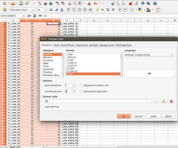 Usted debería ver algo como la tercera imagen, donde puede seleccionar cómo muchos ceros en la columna, cambiar a dos y haga clic en Aceptar. mientras que las columnas seleccionadas, seguir adelante y copiar las columnas y pegarlos en una nueva columna a la derecha. Ahora tenemos todos los datos en la hoja de cálculo, podemos hacer realidad 8 hojas diferentes (4 de ánodo común, 4 para cátodo común). Permite comenzar haciendo los 4 mapas de cátodo común.
