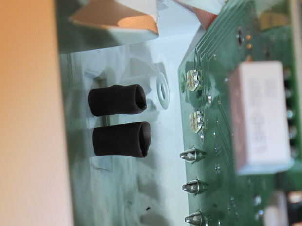 Cuando pones el PCB en su lugar, los LEDs serán cubiertos por el lado más ancho de los tubos encogidos. Por lo tanto, no mezcla la luz emitida por los LEDs y colores será normales.
