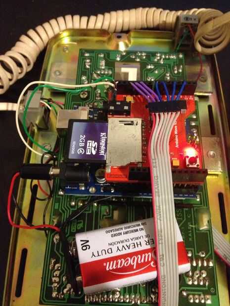 Luego, cortar un alambre (Yo utilicé negra) de 9 voltios conector de la batería (en algún lugar en el centro) y la soldadura de cada extremo a cada lado de la conexión de la versión de teléfono (cómo el teléfono se sabe si descolgar o colgar). Esto evitará que cualquier poder cuando el teléfono no está en uso.