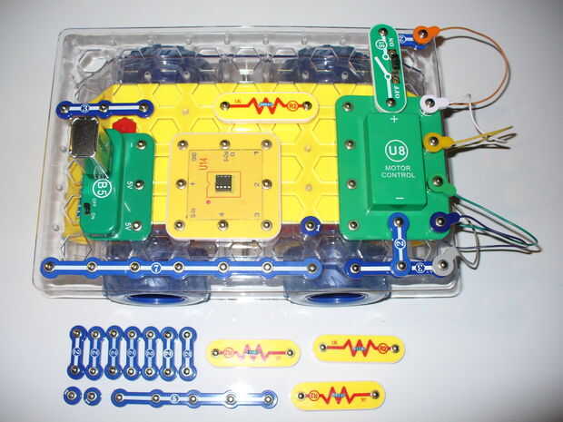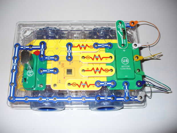 Construir el circuito que se muestra en la figura 1. Si quieres diseñar tus propios circuitos Snap diagramas ir a http://www.snapcircuits.net/learning_center/designer ver las fotografías para la construcción paso a paso.