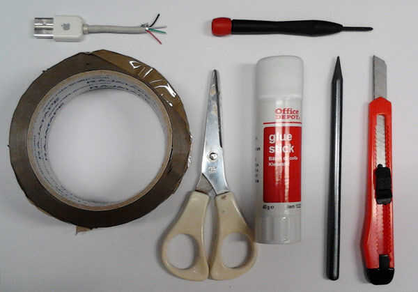 Un destornillador, tijeras, cutter, pegamento, cinta, tal vez un dispositivo de soldado viene muy bien también.