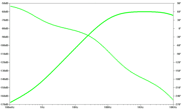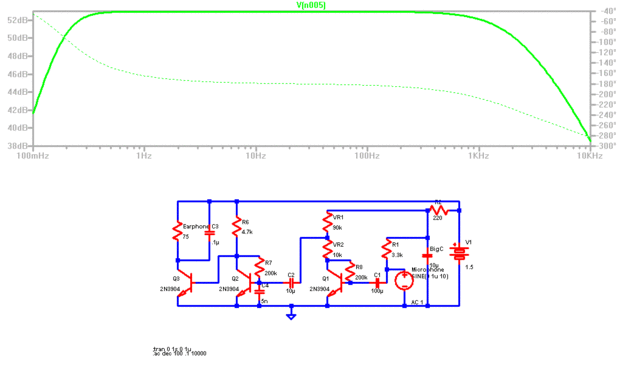 Hay una ventaja de tener un esquema para la simulación porque con unos pocos clics usted puede investigar el efecto de modding los componentes sin realmente hacerlo físicamente. Por ejemplo, si C1 y C2 se sustituyen con los condensadores más grandes, como orden de 100u, la respuesta acerca a alta fidelidad (ver última foto). Alta fidelidad requiere que la respuesta de frecuencia plana y amplia.
