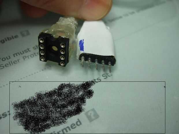 Si dejaste bastante de las patillas en el chip que se pega hacia fuera, usted puede deslizar este adaptador sobre el chip para cambiar el código.