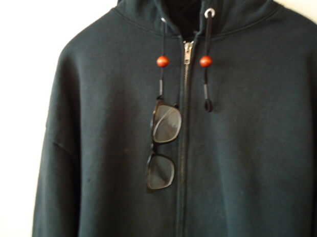 Se trata de una doble idea. Uno, evita el lazo de ser tirado en los ojales de la campana mediante la adición de perlas o joyas, como pequeños amuletos y estatuillas. En segundo lugar uno puede colgar un par de gafas, lápiz o una llave en el bucle creado en el extremo del lazo. Simple y rápido de hacer.