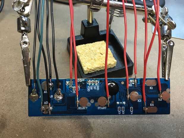 La forma que vamos a hackear es soldar un cable al lado del circuito en cada botón que no es común o tierra que esto significa que si usted utiliza un pad SNES tienes 8 cables, uno por el botón y luego 4 cables para el pad direccional, luego un cable más por un común. Por lo tanto necesita soldar 13 cables a la tarjeta controladora, si nos fijamos en la Junta donde los botones de ir es fácil de determinar cual es el cable único y que es el común, si nos fijamos en los rastros el uno en el lado común ir de botón a botón, pero el otro cable van directamente al chip o al globtop o cualquiera que sea el cerebro de su tecla específica pasa a ser.