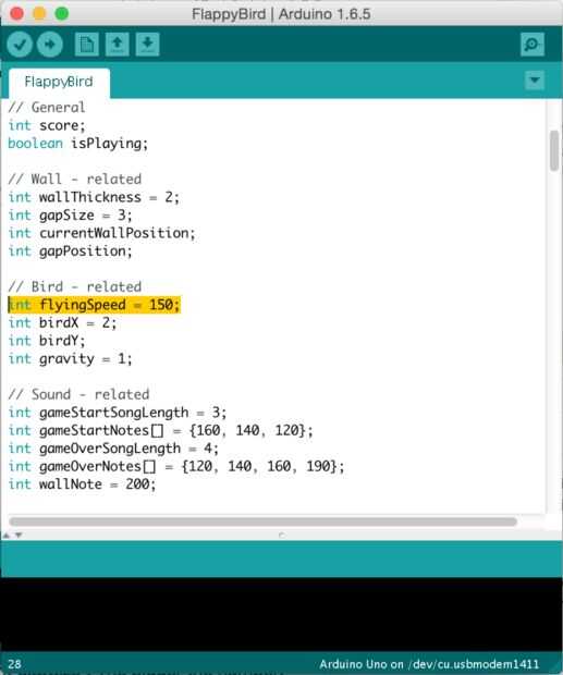 ¿Qué cambiar ¿a qué velocidad vuela el pájaro? cambiar la variable de flyingSpeed situada en la parte superior.