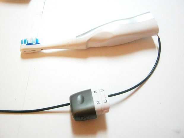 Tome la tapa que ha perforado. Asegúrese de que la bobina del alambre se ha ido desde el interior. Ahora deslice los cables a través de la tapa exterior a interior. Darse cierta holgura para esta próxima etapa. Soldar un cable a uno de los metales en el interior de Spinbrush donde las baterías solían ser ubicado. Luego soldar el segundo cable a la plataforma restante.