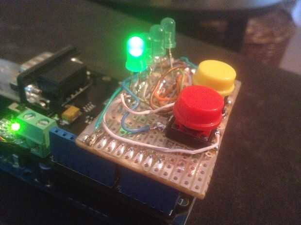 Este Arduino + escudo de Seeed CAN BUS tiene una característica adicional, construí un botón y 4 LED exhibición.