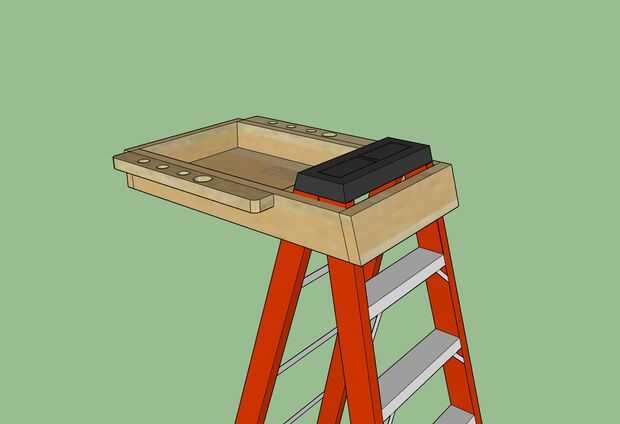 Que me traen a una idea de hackear mi vieja escalera. Escaleras nuevas en el mercado ahora tienen algunos tipos de bandeja o la herramienta de soporte para mantener sus herramientas. Pero por qué compraría uno nuevo solo con el fin de tener esa característica extra. Sólo quiero a hackear mi vieja escalera para tener esa característica y probablemente hacerlo mejor.