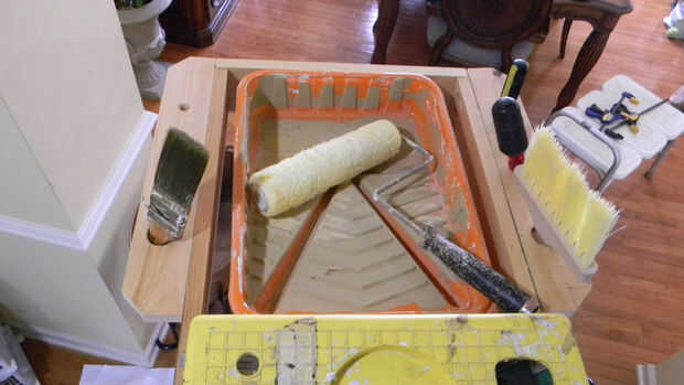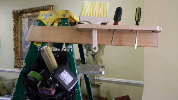Puede ahora Deslice la bandeja y colgar la funda de la herramienta. Llenarlo con herramientas de su elección. Debido a este hack, su trabajo alrededor de la casa mediante una escalera de mano es ahora más eficiente y más segura que nunca.