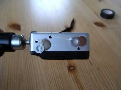 6. para variar la velocidad de obturación: tome la parte inferior lavadora de exposición múltiple del imán flojo y déjelo colgar gratis. Esto va lento la velocidad de obturación y aumentar la exposición. Para disminuir la velocidad de obturación más, agregar peso a la lavadora colgando libre con una pinza o un imán (tenga cuidado de no dejar los imanes en el lado de la cámara interactuar con su imán de colgar). Usted tendrá que experimentar con cuánto peso a añadir para obtener la velocidad de obturación que desee. La velocidad de obturación mínima obtenible de manipular el shutter se considera aproximadamente 1/15 seg de mi globo ocular sin calibrar. Para hacer esto: tomar la arandela de la parte inferior y tire hacia fuera recto y mantenga la tensión en el hilo. Ahora dispara el obturador. El obturador no se disparará porque tienes el mecanismo de obturación bajo tensión. Lentamente libere la tensión en la lavadora y utilizar el hilo dental hasta aquí el recorrido del obturador.