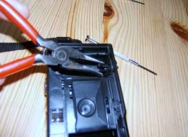 5. ahora busca en las entrañas de la cámara. La Junta de la lente se fija con tres tornillos. Los saque y ponga en una bandeja con un imán.