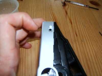 2. quitar el tornillo solitario que encontrarás en el lado izquierdo de la cámara y poner en una bandeja con el imán.