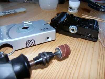 6. una vez curado, seco la tapa frontal y estimar el tamaño del material que necesita cortar para acomodar el buje del trípode.