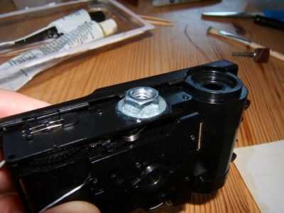 1. Coloque una tuerca con la rosca apropiada para el trípode utilizando el mismo método de la última etapa. También necesita una lavadora para añadir un poco de espacio y repartir la carga de la tuerca a un área más grande de la cámara.