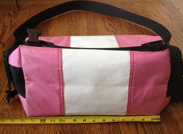 3. redondear las esquinas y el ajuste de prueba. Esta pieza sólo tiene que sentarse dentro de la bolsa para mantener la parte posterior rígida al colgar en su estante de la bici.