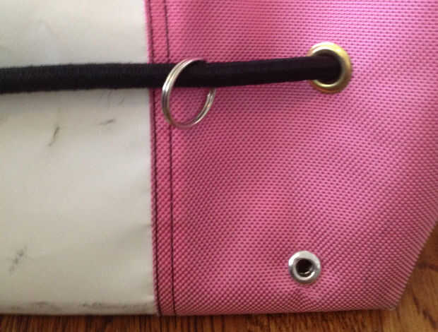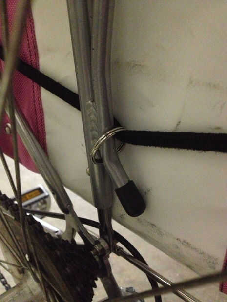 1. pasar el bungee a través del ojal y madera dentro de la bolsa. Fije el anillo de llave en el exterior y lazo el bungee a través al interior de la bolsa. Tire tan fuertemente como puedas y atar el otro extremo en el interior de la bolsa. El amortiguador auxiliar debe ser rígida pero elástica. Este lazo va a atan a su estante de la bici en la parte inferior. 2. Inserte los tornillos y clips de cuerda con "Cadena encaja rápido". Apriete en el interior de la bolsa. 3. ¡ listo! Ahora ajustar el y conseguir algunos víveres! (y cool hacerlo!)