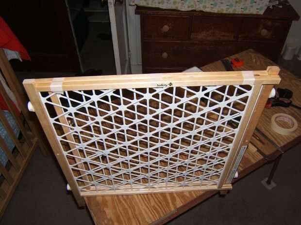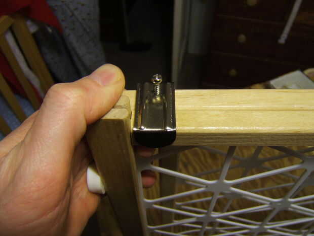 Vuelva a colocar los soportes de la misma forma que unieron antes. Posicionarlos en el borde de los paneles, cerca de los soportes verticales con las patas de goma, pero no tocar. Asegúrese de alternar la orientación de los soportes para sostener los paneles juntos como la puerta se expande en la puerta.