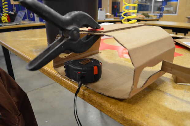 Poner las piezas en el bote de basura y línea estarían en sus posiciones finales. Utilice un bolígrafo para trazar el contorno de las áreas de superposición de las dos mitades. Retire las piezas del relleno el bote de basura y pasar a su mesa. Les en línea tu mesa para que ellos se alinean según las líneas que trazó y pegar. La ventaja es que es mucho más fácil aplicar el pegamento y mantener en su lugar mientras se seca (palillo justo un libro sobre él). La desventaja es que tienes que ser exacto con las líneas de traza o su dispositivo no puede caber correctamente después de que el pegamento se seca.
