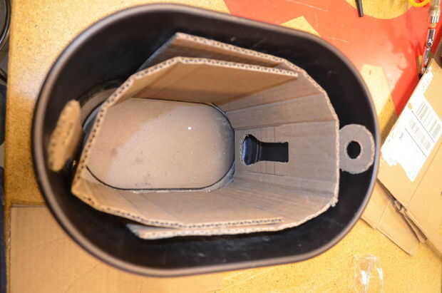 Usuario de Instructables jack8559 tuvo la buena idea de aplicar el pegamento a las áreas superpuestas como lo haría por cualquiera de las dos opciones originales. Poner el forro pedazos a la basura pueden, luego puso una bolsa de basura llena de agua a la basura puede, que se sujetar las dos mitades del inserto junto contra el lado de la papelera en exactamente la posición correcta. Volcar el agua una vez que el pegamento se haya secado, y listo! Este método no lo he probado, pero parece exactamente lo que debe hacerse. Mejor asegurarse de que su bolso no tiene los agujeros en él sin embargo. Llenar antes de aplicar pegamento a la cartulina quede listo antes que el pegamento se seque.