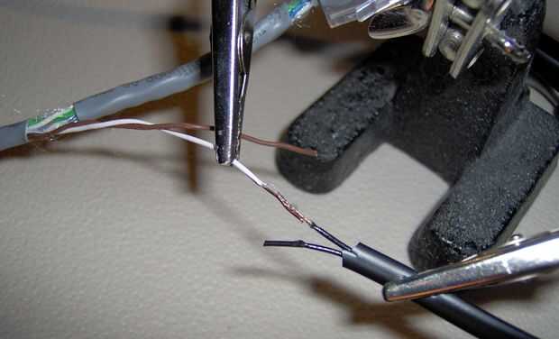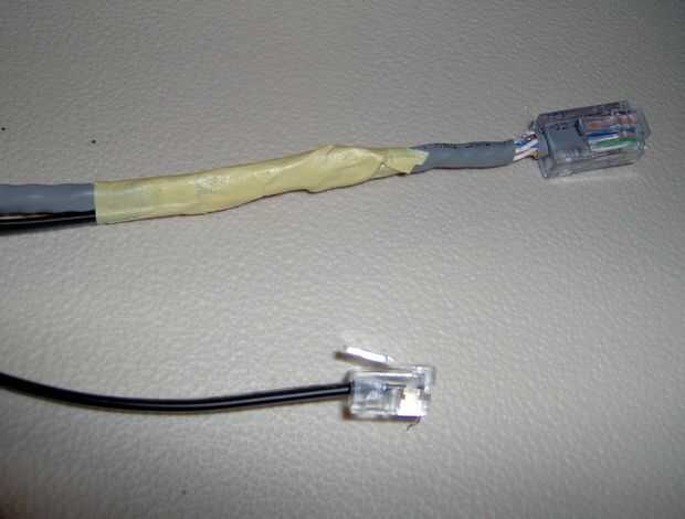 Los dos cables por separado para evitarlos cortocircuitos juntos la cinta. Ni usted ni la empresa de telefonía lo agradeceria esto. La cinta la conexión personalizada toda a cable Cat 5 para que se muestre agradable y limpio.