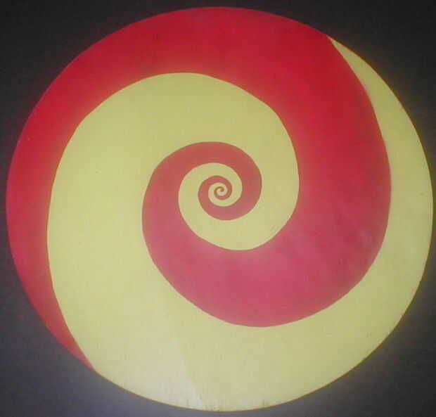 Para quitar más lejos cualquier barrera de arte de este proyecto he encontrado una agradable impresión hacia fuera en la red de una espiral logarítmica y la usé como el centro de la espiral. Como la espiral se hace más grande es mucho más fácil de lay out de la mano. Funcionan todos los de su diseño de espiral en un pedazo de papel con la impresión con cinta a la mitad, una vez es fantástico luego recortar una plantilla y se usa para rociar el disco de cartulina espuma.