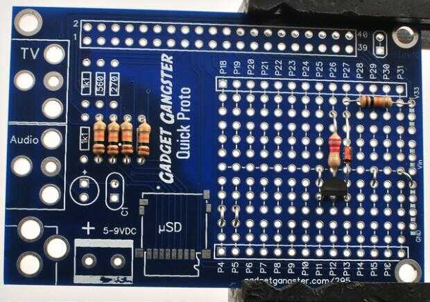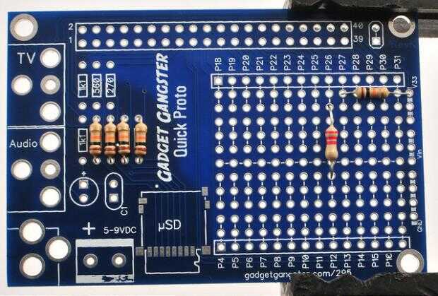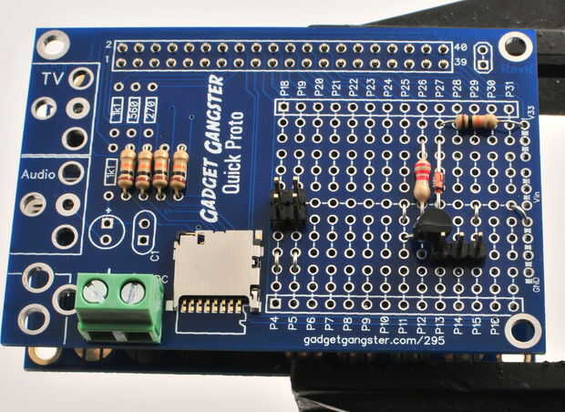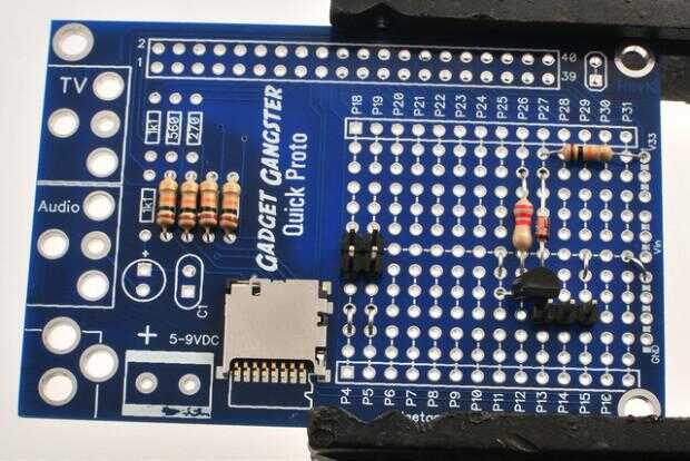 Ahora el conector de alimentación y por último la cabecera. Es más fácil introducir los pasadores de encabezado en la Junta de P8X32A primero poner su placa Proto rápido en la parte superior