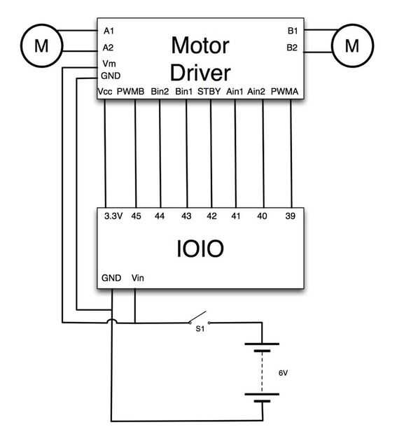 En lugar de soldar cabeceras macho en un lado del tablero de conductor del Motor que se conecta directamente en el IOIO, opté por utilizar encabezados masculinos en ambas tarjetas y conectar con los cables de puente.
