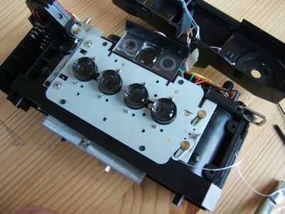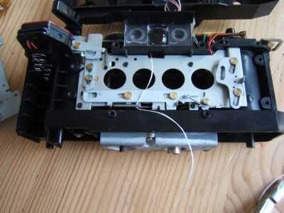 para el bulbo y múltiples características de la exposición: ver el ensamble de persiana y localizar el mecanismo de volver a armar. Es una lengüeta pequeña del metal unido a un muelle ligeramente a la derecha del centro y a lo largo de la parte inferior de la Asamblea. Tome una longitud de cadena (me gusta a la seda dental encerada de uso) y atar un extremo en esta ficha. Cortar la cola cerca del nudo, fundir el final con una llama (el hilo dental es nylon) y hacer el nudo permanente con una gota de pegamento sobre el nudo. Enrosque el otro extremo del hilo a lo largo de la parte inferior de la cámara y hacia el lado de mano izquierda. Usted quiere asegurarse de que el hilo no goma encima de cualesquiera otros mecanismos en la cámara. Por suerte, el Nishika tiene un montón de espacio en el interior.1B. para sólo la función del bulbo: mirar el ensamble de persiana y localizar el mecanismo del obturador . Es una ficha de metal ligeramente a la izquierda del centro y a lo largo de la parte inferior de la Asamblea. Tome una longitud de cadena (me gusta usar hilo dental encerado) y atar un extremo firmemente a esta ficha corte de la cola cerca del nudo, fundir el final con una llama (el hilo dental es nylon) y hacer el nudo permanente con una gota de pegamento sobre el nudo. Enrosque el otro extremo del hilo a lo largo de la parte inferior de la cámara y hacia el lado de mano izquierda. Usted quiere asegurarse de que el hilo no goma encima de cualesquiera otros mecanismos en la cámara. Por suerte, el Nishika tiene un montón de espacio en el interior.