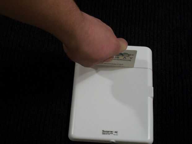 ahora, apague su E-reader por última vez, luego utilice una toalla o algo suave para descansar en lugar del E-reader bocabajo en la superficie y utilizar una tarjeta de la tarjeta de crédito/biblioteca / pedazo de plástico y ejecutarlo a través del pliegue en la parte trasera de la E-reader para abrir el panel posterior