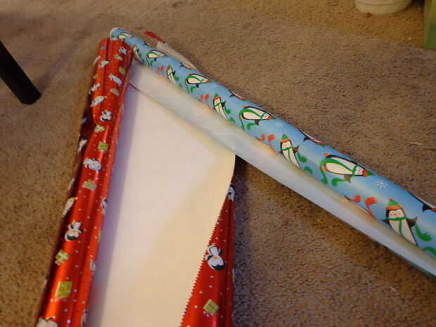 Junto con un pequeño problema... El papel se desenrolle bien cuando no quieres o ruede para arriba cuando usted está tratando de envolver un regalo o cortar una longitud de la misma!