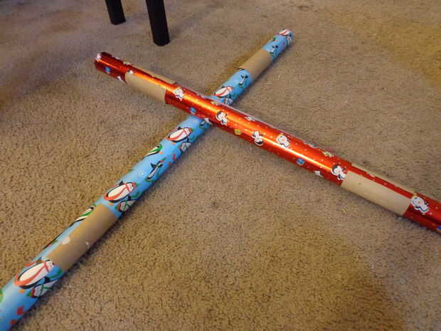 este proyecto tomó alrededor de 1 hora. Es una gran manera de organizar el papel de embalaje.Paso 1: pintar un taburete viejo Tuve un taburete viejo y 99 centavos una lata de pintura en aerosol negro.Paso 2: Coser un bolso para los arcos hice un simp