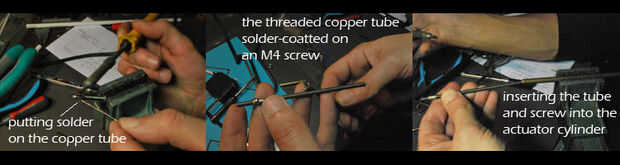 -Tomar el tubo de latón de diámetro de 5,8 mm escoge uno de los extremos y tratar de al menos 5mm de arena en el tubo (en el interior). Monte el tubo de latón en el vicio sin exprimirlo y aplique una capa delgada de soldadura en el interior.