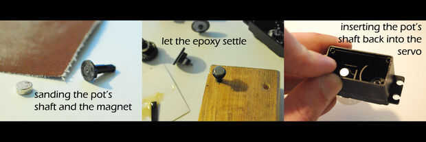 -Preparar una mezcla de epoxy pequeñas, inserte el eje del pote en el agujero y coloque el imán de disco en el eje de la olla con una pequeña gota de epoxy entre ellos. Cuidadosamente el imán del centro en el eje y dejar para reposar al menos 6 horas (para un epoxy de 5 minutos).