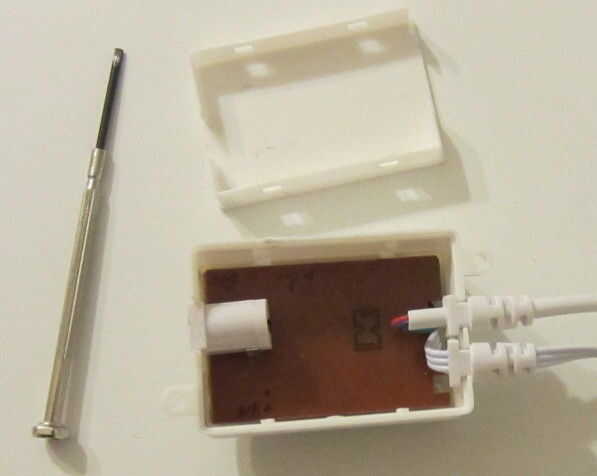 El sensor de movimiento de una lámpara al aire libre fue agregado a la iluminación existente. Las instrucciones para el cableado vienen con la unidad. Para mantener el perfil bajo, he quitado la caja de ensambladura y había blindado gabinete con chap