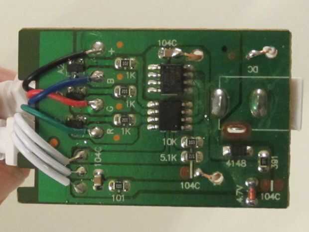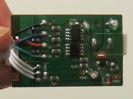 Usted también querrá Rotule los cables de alguna manera para que sean fáciles de identificar. Hago referencia a ellos como "Power" (el cable de suministro de +4.8 voltios de la placa de circuito para el microcontrolador añadido), "Control" (el cable de alimentación de las virutas del IC en el tablero desde el microcontrolador) y "Tierra".