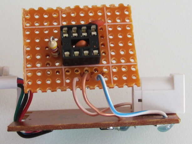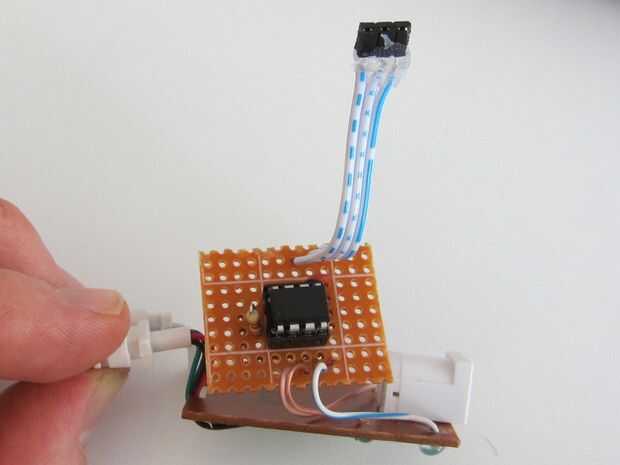 Nota que estoy usando un socket DIP tan el la Attiny85 pueden eliminarse del circuito para reprogramación. Recomiendo hacer esto porque evitará que el microcontrolador se dañen por el procedimiento de soldadura y le permitirá realizar cambios en el futuro, pero no es estrictamente necesario.