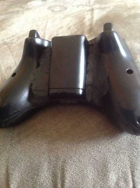 Vas a querer el resto de la sugru y split en bola igual les aplasta hacia abajo en la parte posterior al lado de la batería entonces lisa sacarlos y añadir sus guiones de dedo si lo desea ahora tienen un controlador totalmente Xbox hackeado con sugru!