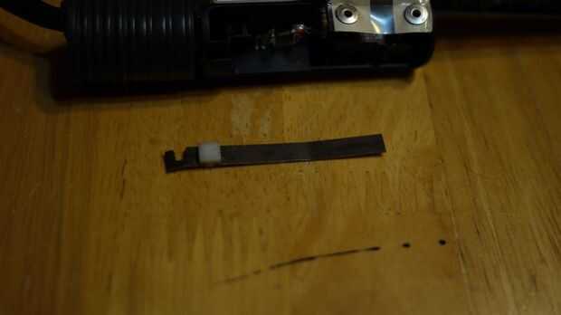 Habrá una tira de metal que empuja el botón de encendido y apagado. A había doblado la tira del metal hasta que lo empujaba siempre firmemente el interruptor. Incluso cuando la golpeó con una fuente de calor superior a 150 grados f el. (pistola de aire caliente o secador).