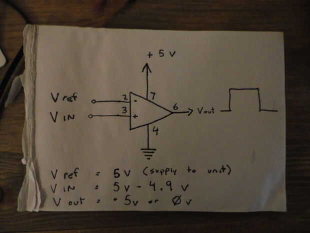 Os adjunto también un LED y un resistor de pin 6 a tierra. Así que cuando la salida alta (hablando está sucediendo), el LED se ilumina así. Yo quería confirmación visual y encontrar ayuda a aliviar lo que me aqueja.