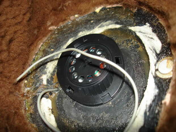 Conectar el cable con el conector no debe en este punto a los altavoces. Al quitar los cables de sus respectivos lugares, debe tomar nota de donde deberían estar. Enrosque primero los cables a través del tubo de goma negro siempre. Los cables rojo y verdes de los altavoces originales pueden ser desechados, mientras que los cables amarillo y blanco deben ser solo de la izquierda (esto es puramente estético y opcional). Pase los cables a través de los agujeros diseñados para los cables viejos. Esto puede ser frustrante pero no te rindas.