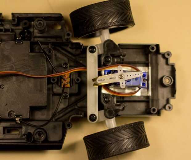 Otra idea interesante es mejorar la "conducción". El frontal motor DC podría ser reemplazado por un motor cinemático en orden a la obtención de ángulos de giro variable. La imagen de arriba es un ejemplo que encontré en la web, no es exactamente el mecanismo de mi carro, pero muestra cómo podría ser.