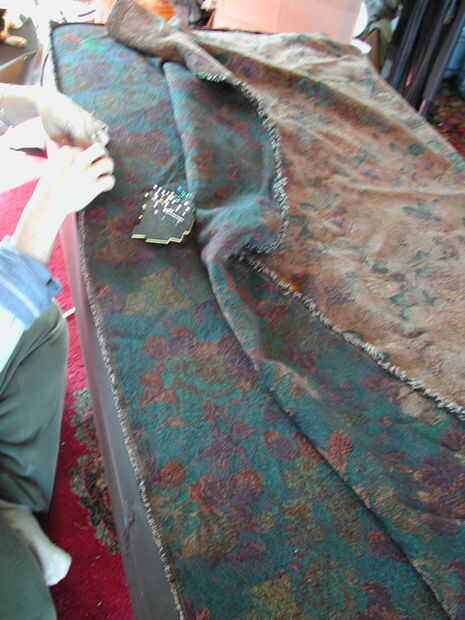 Tomé la cubierta del colchón (aún adentro hacia afuera) y ponerlo sobre el colchón. Me volcó el colchón y ancla-cubrió a los lados a mantener en su lugar. Entonces cubrió y recortado el segundo lado recordando mantener la tela de adentro hacia afuera. Esto es cuando se utiliza la ranura en el lado. Después de haber quitado los pernos de anclaje que los paneles laterales en su lugar Deslice la cubierta fuera del colchón como si fuera una funda de almohada.