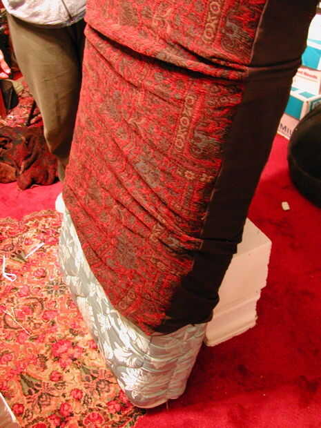 La idea es el mismo para los resortes de la caja excepto la parte inferior sólo es envuelto alrededor y grapado. No hice un panel inferior. También sólo usé un algodón pesado para el panel superior en lugar de tapicería o tela decorativa ya que no es visto. Ya que la cubierta de la base de resortes es cayó sobre y envuelve no es necesario para el corte final.