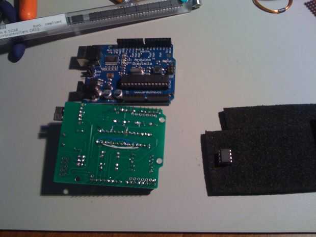 Usted necesitará cinco pequeños hilos en la parte inferior del escudo de ISP de Arduino de la soldadura.
